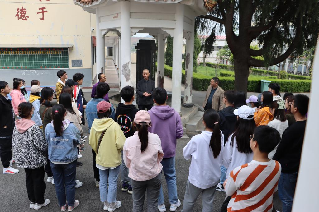 接着,师生们来到mk体育潭头附中(原七七中学旧址)参观。当走到位于附中校内的“河大柏”旁边时,大家不禁驻足停立。“苍柏无言,下自成蹊”,这两棵见证了mk体育办学辉煌历程的苍苍翠柏,用它们端庄、秀颀的身姿挺起了教育人的脊梁。